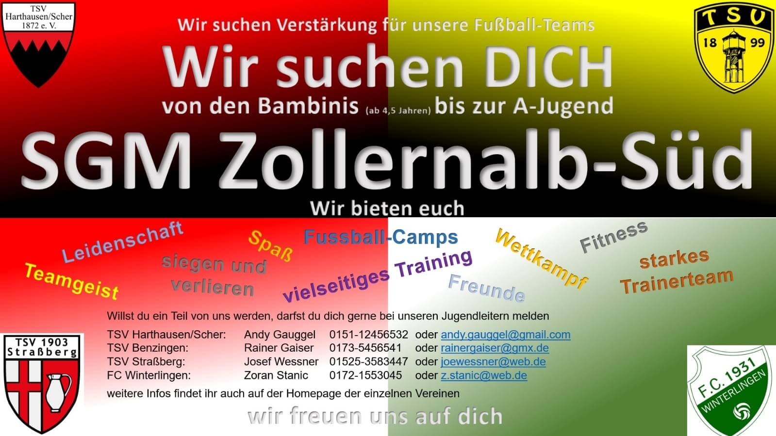 In der Jugendabteilung gehen wir wieder als SGM Zollernalb-Süd (TSV Benzingen, TSV Harthausen, FC Winterlingen und TSV Strassberg) mit jeweils einer Mannschaft von der A- bis zur C-Jugend an den Start. Die D, E, F und Bambinis gehen als TSV Strassberg in die neue Saison 2025/2026.